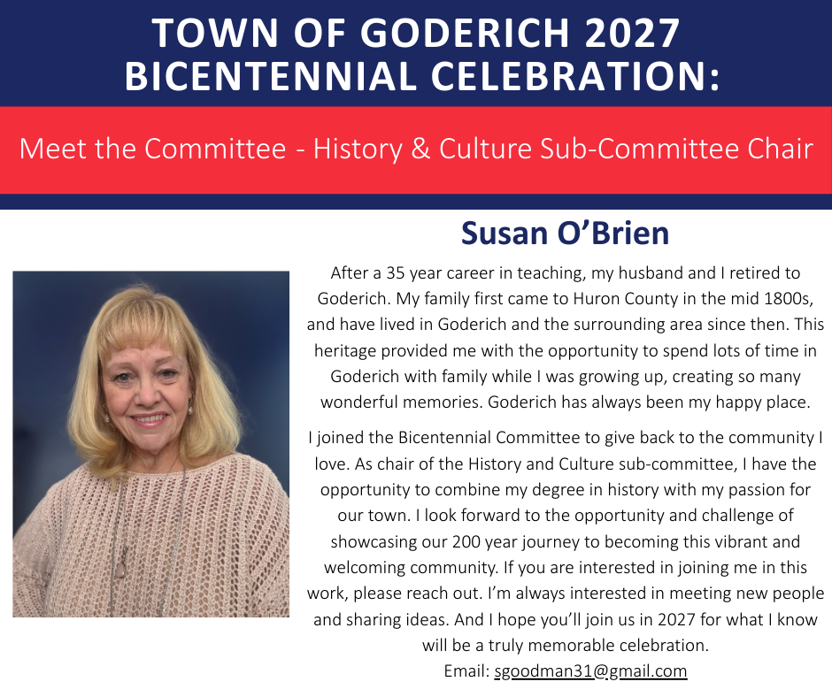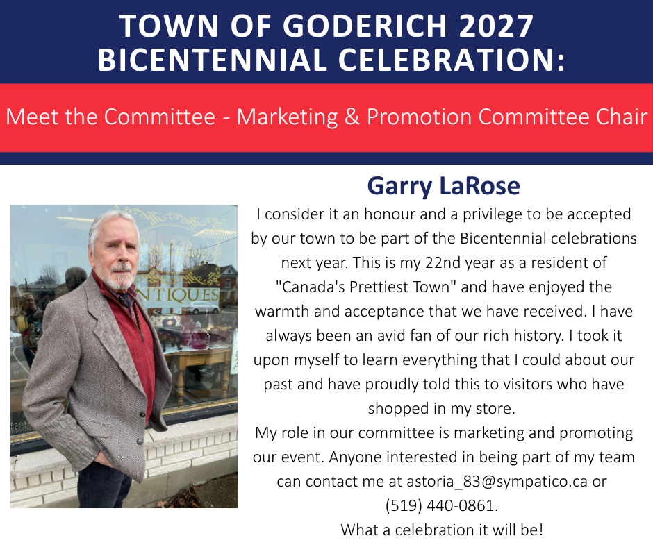 Stay up to Date: Follow the Town of Goderich 2027 Bicentennial Facebook and Instagram pages.